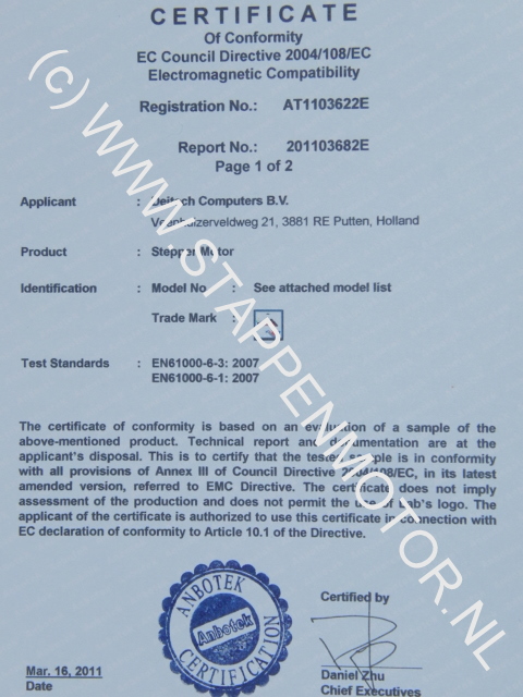 Sommige van onze CNC Stappenmotoren kunnen we nu tegen een meerprijs met CE Certificate leveren.
